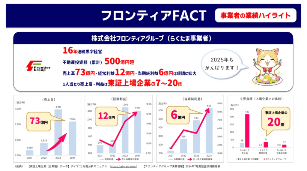 らくたまの運営元は、不動産事業を中心に手がける株式会社フロンティアグループ。