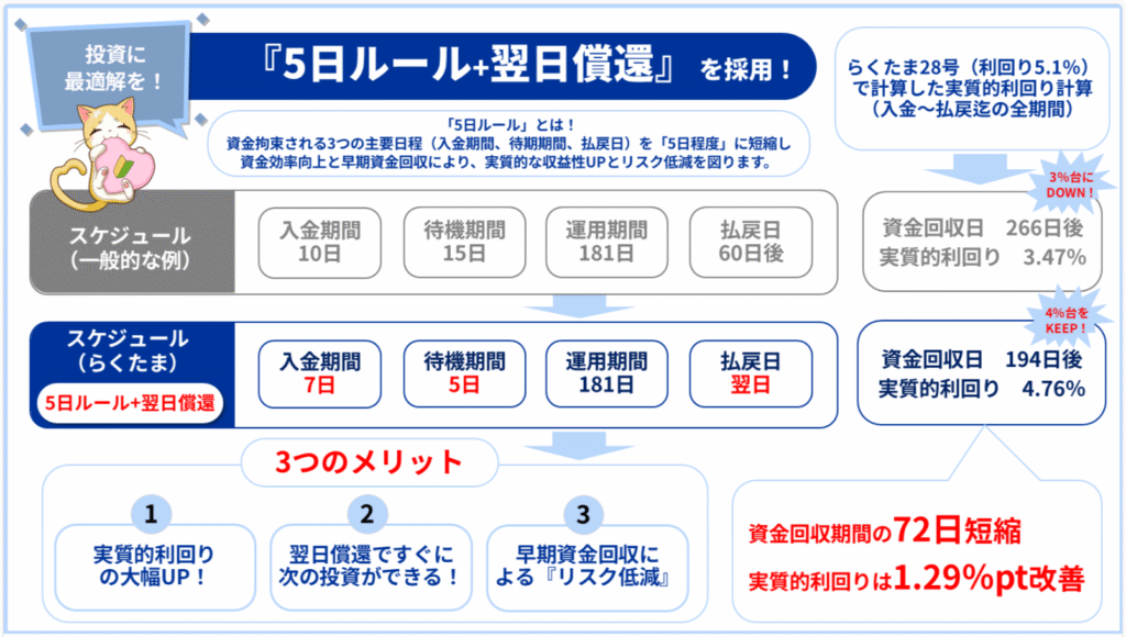 実際にらくたまではこれまで全ファンドが運用終了の翌日に資金を返してる🙌